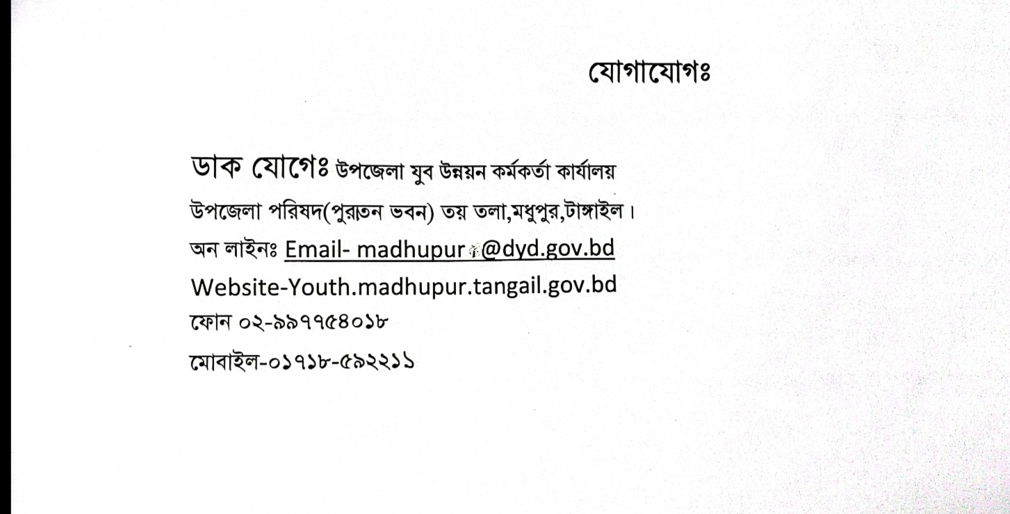 উপজেলা যুব উন্নয়ন কর্মকর্তার কার্যালয়,মধুপুর,টাঙ্গাইল
